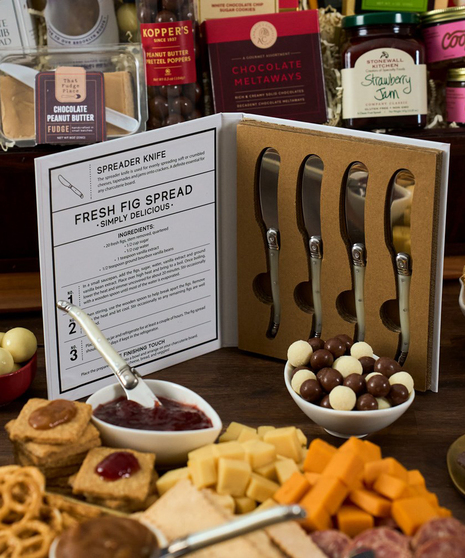 Introducing the Charcuterie and Snacks Extravaganza Basket, it's the ultimate gift for every occasion! This beautifully curated gift features a delightful set of spreader knives, a stylish olive dish set of two, and a variety of delicious savory and sweet treats. Whether you're celebrating Christmas, holidays, important milestones, or special gatherings, this gift is designed to impress and delight. Perfect for families, the team at the office, or sharing with friends, it offers something for everyone to enjoy. Make your holidays extra special with this fun, unique, and crowd-pleasing gift that's ready to impress. Celebrate the season with the perfect gift to share, enjoy, and create memories! Please review the contents to see all the goodies included in this gift.