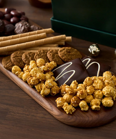 One of our most popular gifts year after year is our Christmas Gift Basket - Premium. Once your loved ones have tasted what's inside this big, beautiful gift, it will become one of their favorite gifts of the year. The holiday season is all about celebrating and appreciating the people around you, and this gift is designed to include everyone in the celebration. Your recipient will enjoy gourmet sweet treats, such as a delightful assortment of holiday-inspired cookies, rich and creamy chocolate caramel grahams, and other uniquely delicious gourmet sweets. Savory and salty treats include succulent sausage, creamy cheese, artisanal crackers, and irresistible gourmet popcorn. It's easy to picture friends and family gathering together for a game night, decorating the tree, watching a holiday movie, or just enjoying each other's company, chatting, and savoring all these delicious snacks. Let's get the holiday celebrations started and send this gift today!