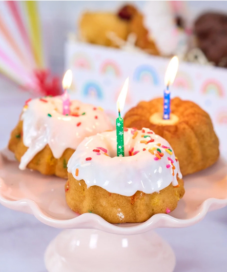 Birthday mini bundt cakes create a fabulous birthday celebration! We created the Happy Birthday Bundt Cake assortment so you can send someone happy birthday wishes that are fun, beautiful, and delicious! The birthday girl or boy will enjoy three flavors of mini bundts, and we've included candles so they can make their birthday wish come true!