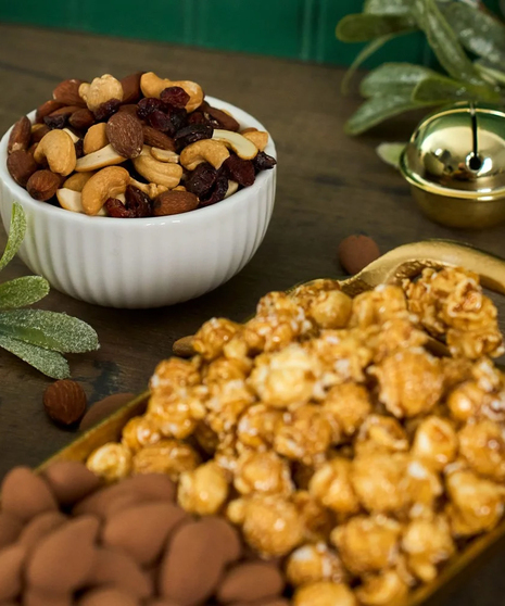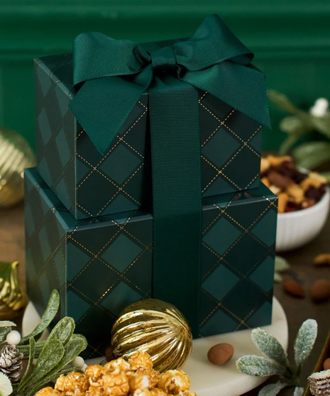 The Happy Holidays Snack Gift Box is a great way to show someone you're thinking of them during the holidays. Inside the festive gift box, your friends and family will find delicious treats such as dark chocolate cocoa-dusted almonds, melt-in-your-mouth wafer cookies, a delicious nut mix, and gourmet caramel popcorn. Send this delightful gift to make someone's holiday merrier and brighter!