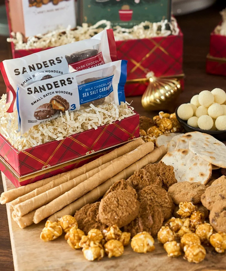 Santa Claus made an early appearance this Christmas season, bringing with him our new Season's Greetings Gift Tower wrapped in holiday red. Prepare for an abundance of holiday cheer as this tower presents an enticing assortment of gourmet delights, ranging from savory and salty favorites to mouthwatering sweet treats. With each box unwrapped, your lucky recipient will discover artisan crackers & cheese, crunchy and irresistible gourmet popcorn, a delicious assortment of cookies, and more. This Christmas, send the Season's Greetings gift tower and spread warmth, joy, and happiness to loved ones, friends, and family.