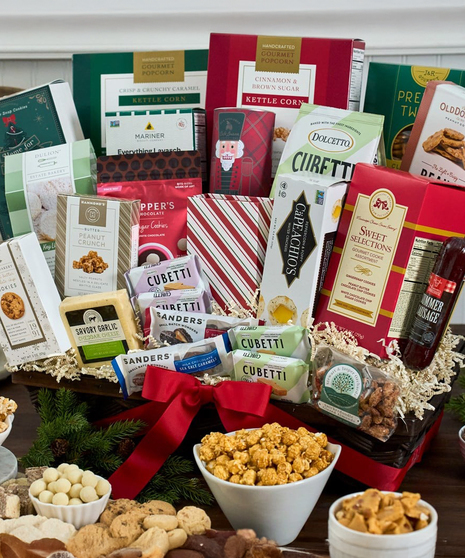 The Corporate Show Stopper Gift Basket filled with holiday treats!