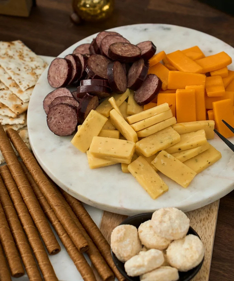 Experience the Ultimate Meat and Cheese Gift Basket, an ideal gift for any gourmet lover. This beautifully wrapped gift includes an excellent set of cheese knives, top-quality cheese and crackers, flavorful sausage, gourmet popcorn, rich cookies, and a delicious assortment of chocolate-covered berries. Whether you're celebrating a special event or just want to pamper yourself, this gift offers a delightful selection of premium treats that will please any taste buds. The Ultimate Meat and Cheese Gift is the perfect choice for those who enjoy the finer things in life.